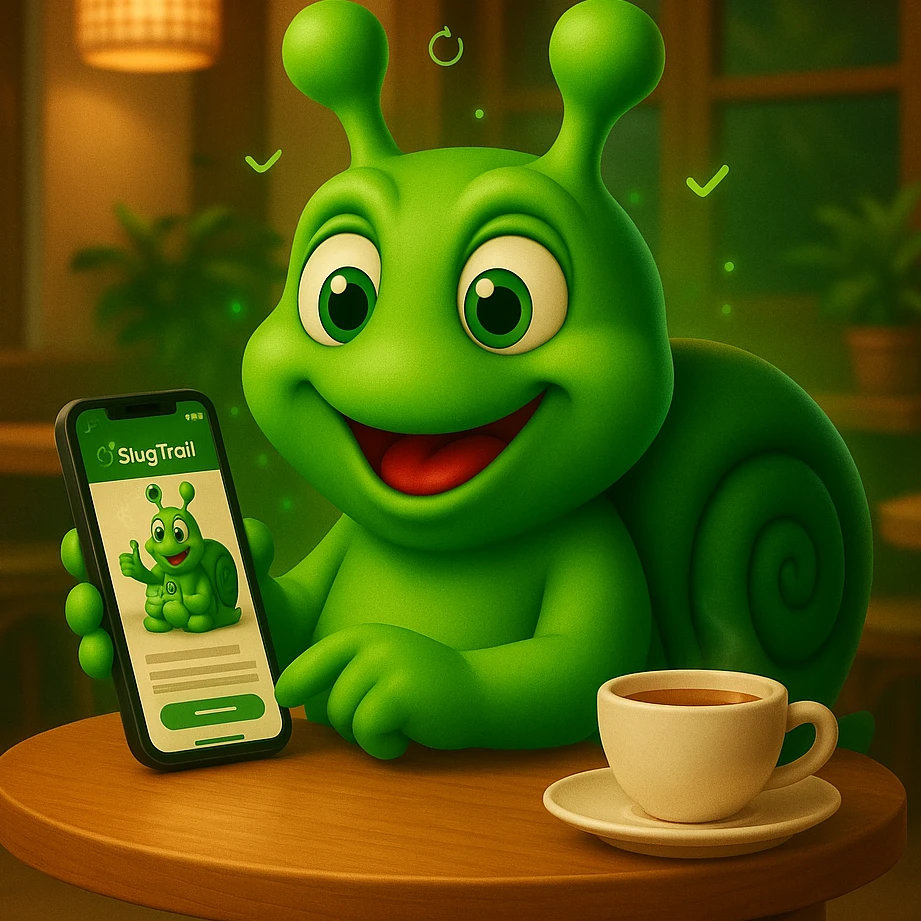 Slugsy คือมาสคอตประจำ SlugTrail — เพื่อนร่วมทางที่เป็นมิตรของคุณ ที่เดินทางทั่วประเทศไทย (และที่อื่น ๆ) ค้นพบสถานที่ เรื่องราว และธุรกิจใหม่ ๆ มากมาย
